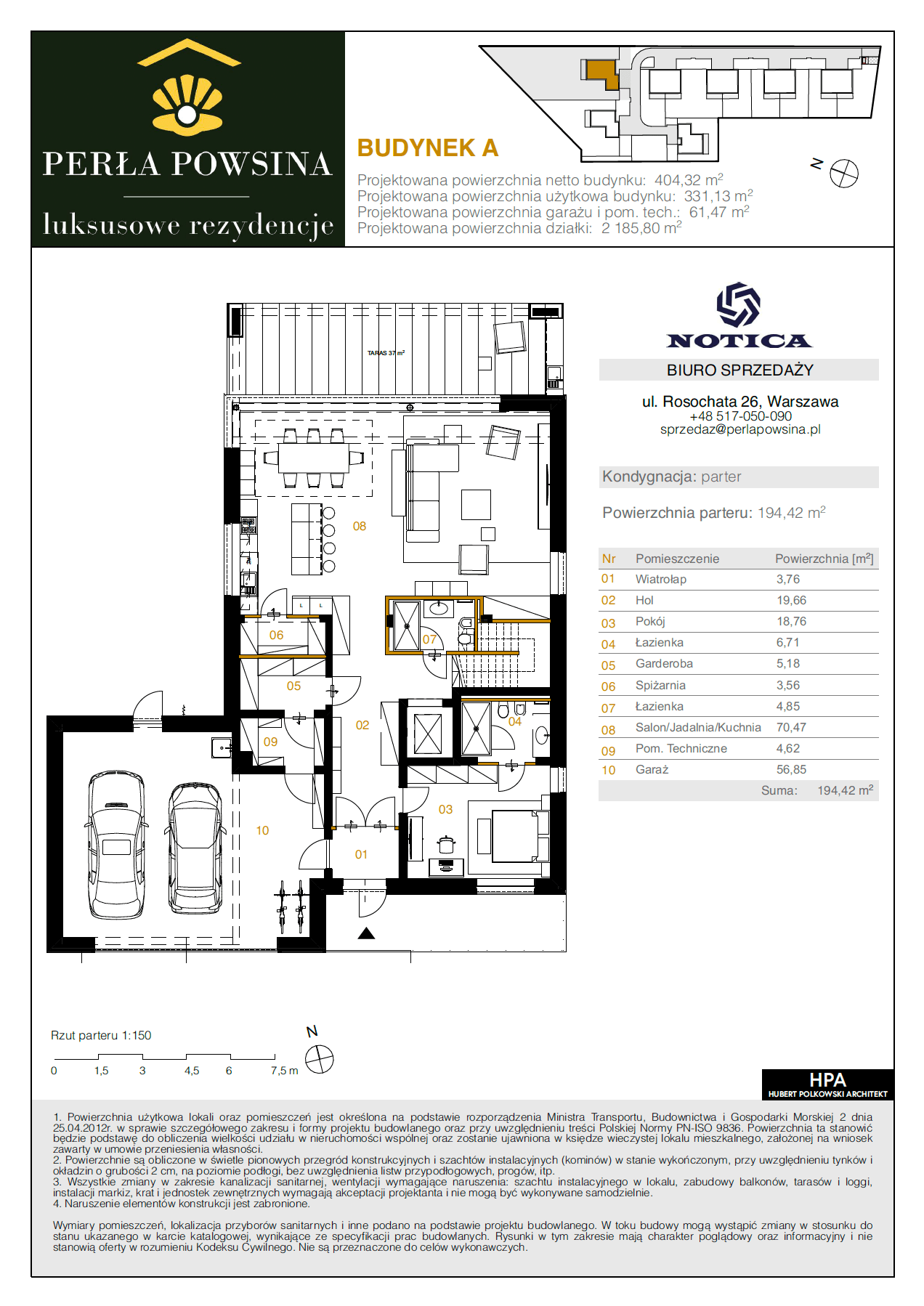 Rezydencja A będzie bez wątpienia stanowić unikatową nieruchomość w prestiżowym kompleksie Perła Powsina. Ta luksusowa willa to prawdziwa perła architektury o imponującej powierzchni całkowitej 403,96 m² (342,49 m² użytkowej), a usytuowana zostanie na ponad 2185-metrowej działce z bezpośrednim dostępem do jeziora. To przestrzeń, która połączy nowoczesne technologie, najwyższy standard materiałów i niepowtarzalny komfort życia w otoczeniu natury.