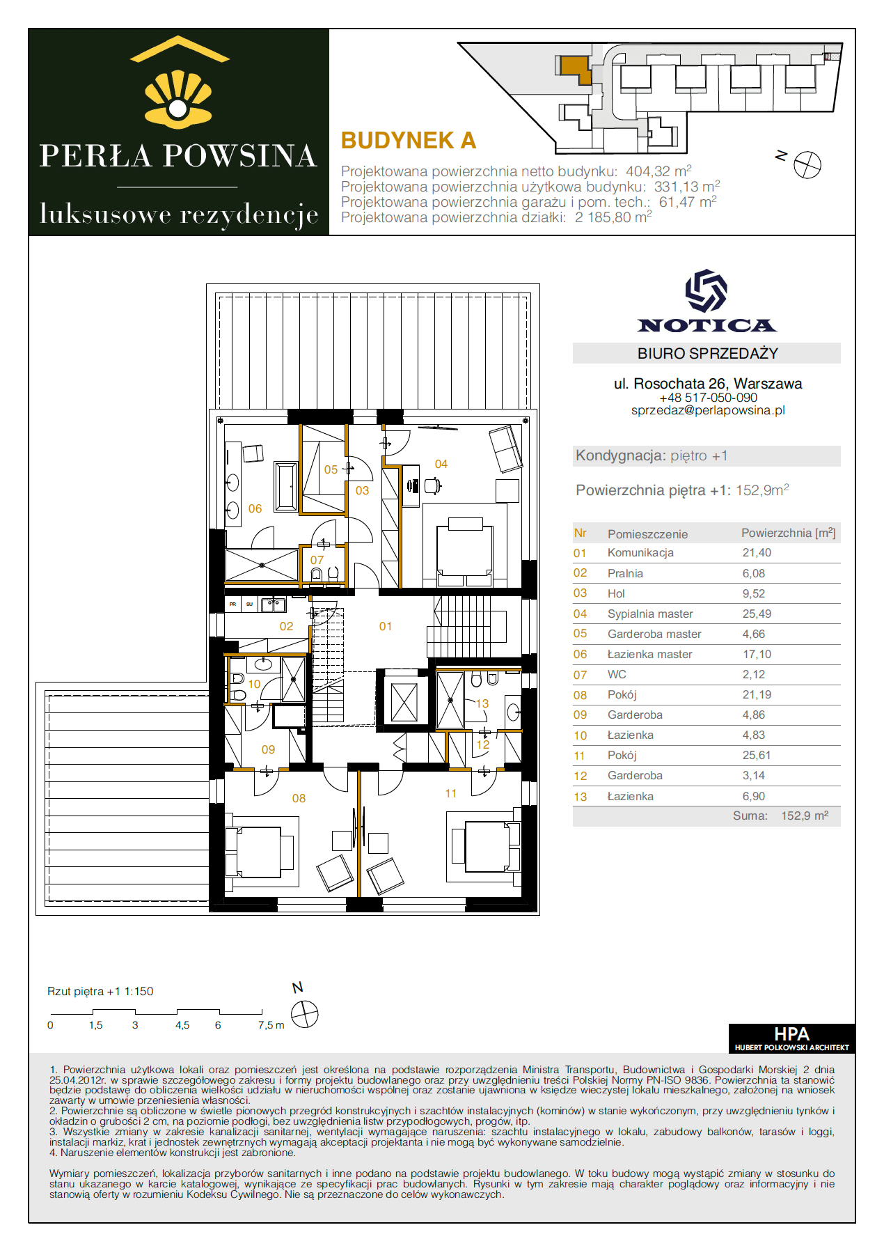 Pierwsze piętro prestiżowej rezydencji A o powierzchni 152,43 m² obejmie trzy przestronne sypialnie oraz główną typu master o powierzchni ponad 25,49 m². Zostanie ona wyposażona w dużą garderobę i imponującą łazienkę (17,09 m²). Dodatkowo na tym piętrze znajdą się pralnia, osobna toaleta, dwie garderoby oraz łazienki, a także tarasy – pierwszy o powierzchni 47,5 m², drugi 45,4 m². Pozwolą one na relaks na świeżym powietrzu, oferując jednocześnie wyjątkową prywatność i niezakłócony kontakt z naturą.