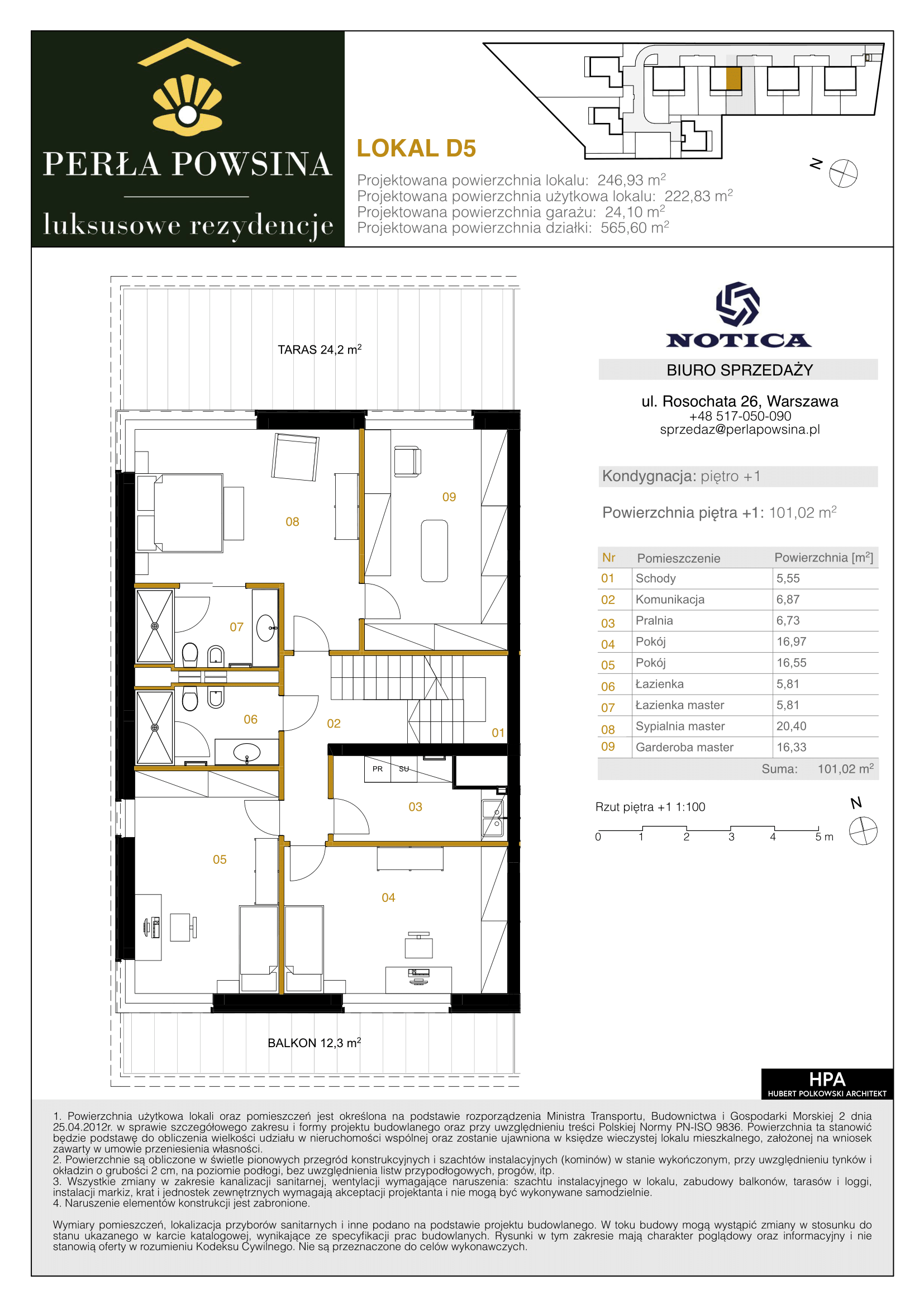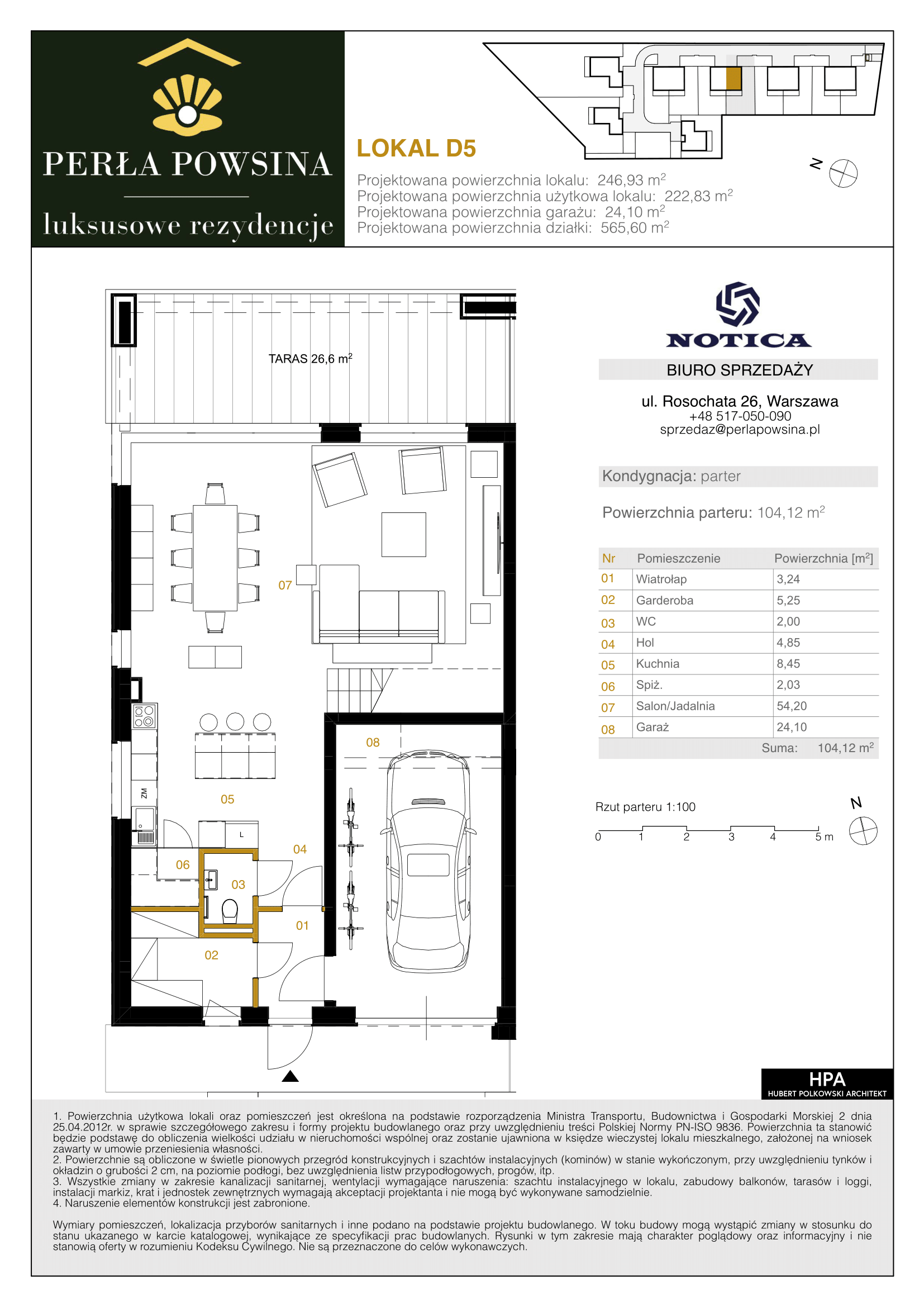 Zaprojektowana rezydencja D5 ma ponad 222,83 m² powierzchni użytkowej na działce o powierzchni 565,60 m². Będzie stanowić wzorzec nowoczesnego domu jednorodzinnego z segmentu premium. Bryła domu zostanie utrzymana w minimalistycznej stylistyce, aczkolwiek nie zabraknie jej elegancji. Wszystko za sprawą planowanego zastosowania szlachetnych materiałów elewacyjnych – naturalnego drewna oraz kamienia.