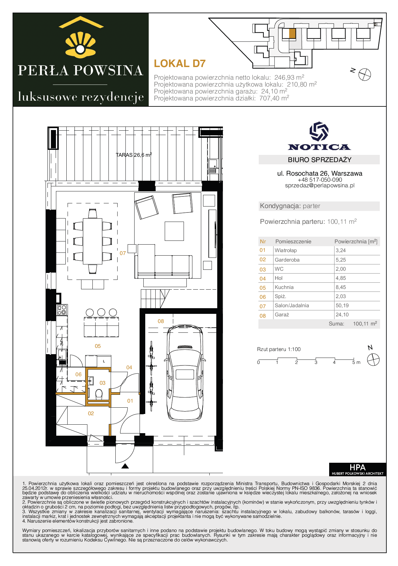Rezydencja D7 to przykład nowoczesnej architektury harmonijnie zintegrowanej z okolicą. Dom w zabudowie bliźniaczej o powierzchni użytkowej ponad 220 m² usytuowany zostanie na działce liczącej ponad 540 m². Willa będzie stanowić część prestiżowej inwestycji Perła Powsina, która wyróżnia się kameralnością i położeniem w bezpośrednim otoczeniu natury.